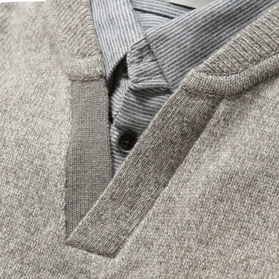 - 멜란지 조직 디자인의 클래식한 남성 니트. - 부드러운 터치감의 최고급 Super Fine MERINO WOOL 100% 소재를 적용하여 고급스러움 및 보온성을 전해줌. - 오픈넥에 스트라이프 셔츠를 레이어드함. - 이지한 FIT 라인으로 깔끔한 외관을 연출함. - 소매단,밑단의 립조직으로 실루엣을 잡아줌. - 스웨터나 티셔츠에 셔츠가 레이어드된 스타일로, 코디 및 착용시간 단축이 가능한 INNOVER 라인. * 판매원: 코오롱인더스트리(주)FnC부문 * 원산지: 베트남