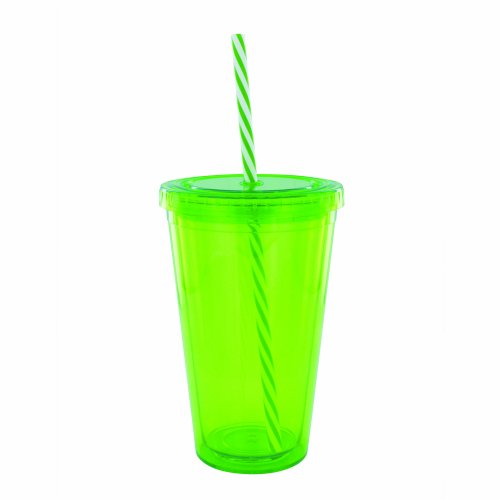 Smart Planet EC10-CCS 16-Ounce Eco Cold Drink Cup with Spiral Candy Cane Straw, Green