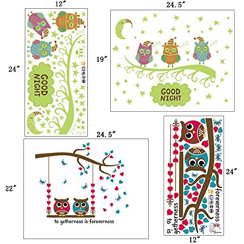 - Wall Decor Stickers For Kids:We provide two owl wall stickers.One of which is night light wall stickers and the other is ordinary owl wall decals.Colors and patterns are suitable for boys and girls.Owl is the incarnation of wisdom and auspicious little angel, it’ll bring your kids happy mood
