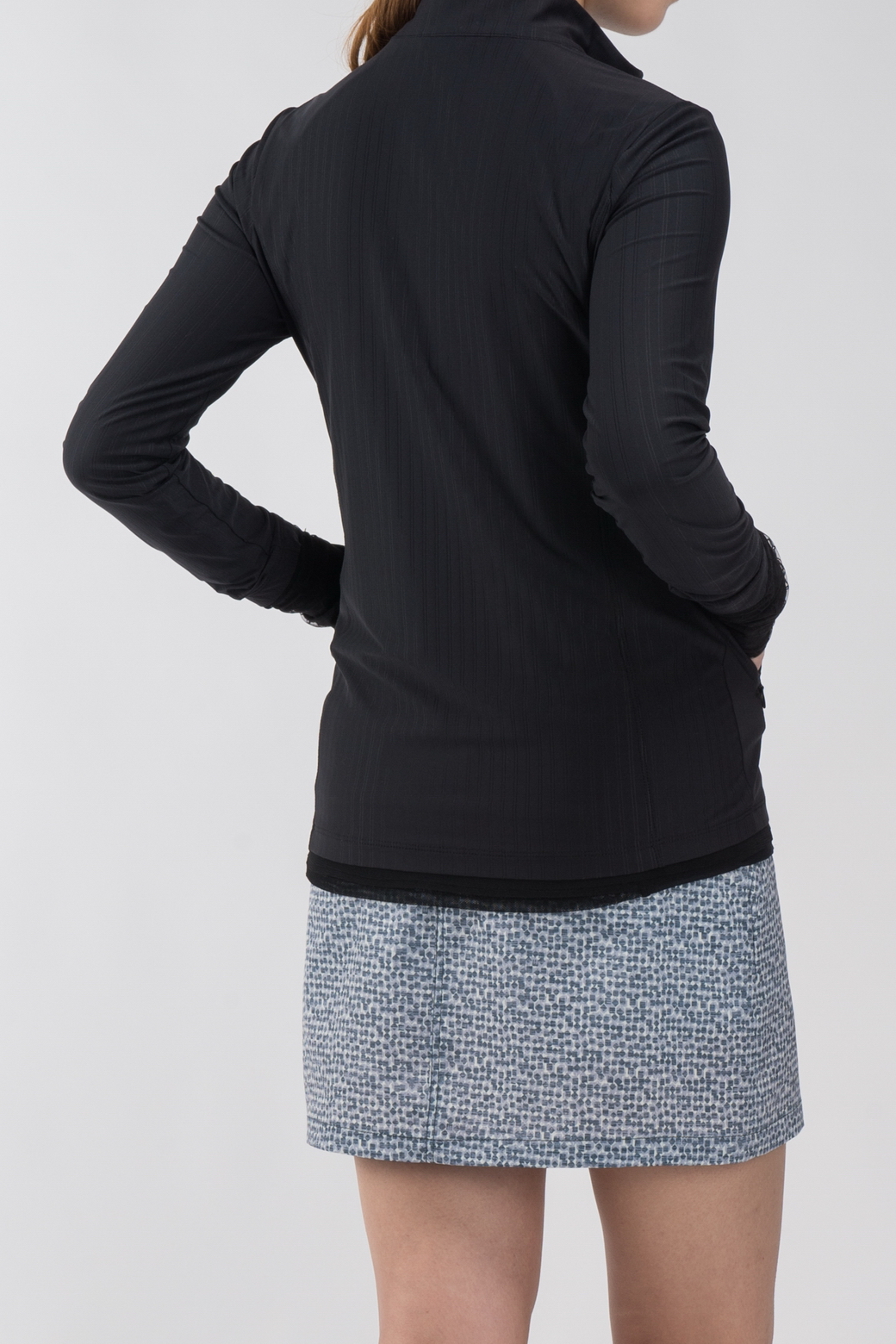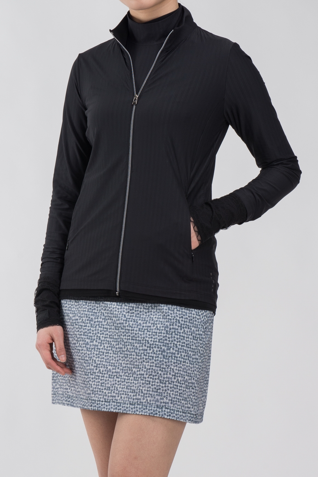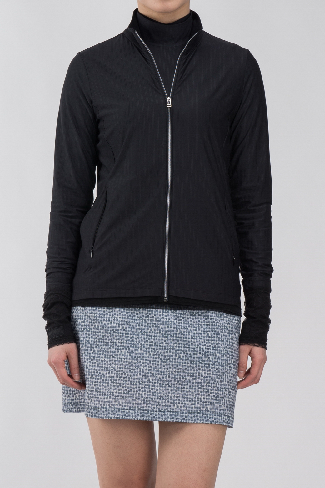 - 하이넥 디자인에 풀지퍼 여밈으로 착장이 간편함.