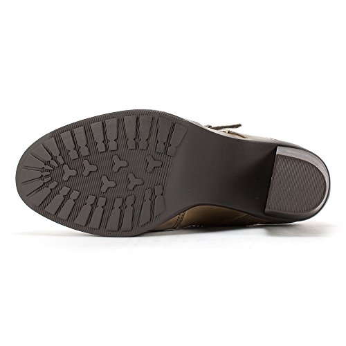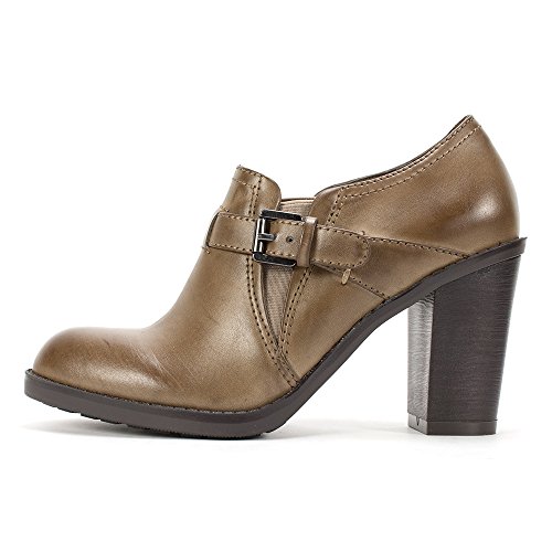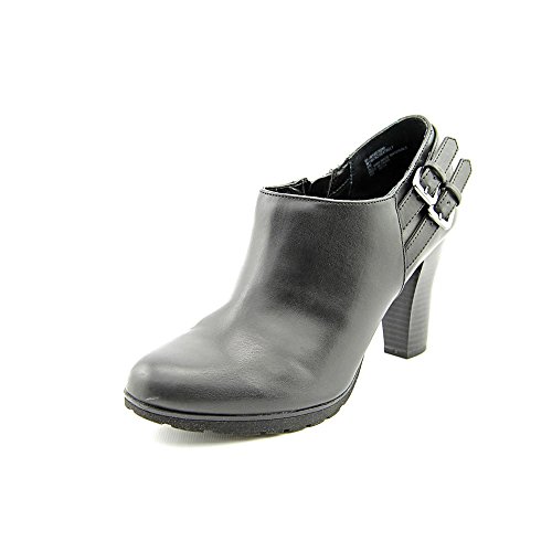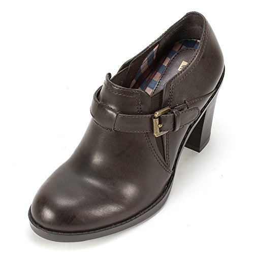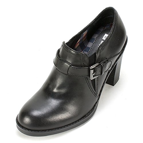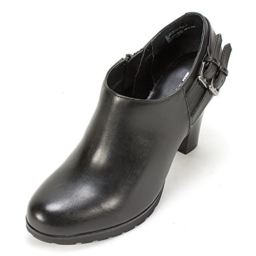 Slip on shootie with elastic comfort panels and a strap and buckle. An edgy but very wearable silhouette make these booties go beyond the seasonal trends.