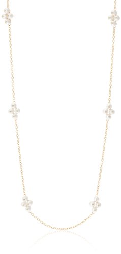 작은 크리스탈 펄을 롱 넥크리스에 곁들이고 있습니다.