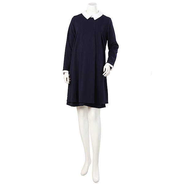 단정하고 깔끔한 느낌의 카라배색 원피스로 양옆의 끈으로 개월수를 자연스럽게 조절이 가능합니다