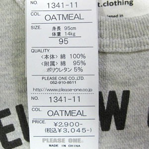 | 【ベビー服・子供服のプリーズワン】 ベビー・キッズからジュニアまで幅広いサイズを取り扱っております。 ポスター、ラスクをはじめ人気のスポーツブランドも取り扱っています。アウトレット 訳あり商品 季節セール 送料無料商品などお得なコーナーや入園入学準備 お祝い プレゼント カジュアル服 インポートなどの子供服が揃っています。 ●全国一律送料540円(税込) ●5,400円(税込)以上お買い上げで送料無料! ●メール便 164円(A4サイズ厚さ2cmまで) 82円(厚さ1cmまで) 【取扱いサイズ】 60cm/70cm/80cm/90cm/95cm/100cm/110cm/120cm/130cm/140cm/150cm/160cm 10cm/11cm/12cm/13cm/14cm/15cm/16cm/17cm/18cm/19cm/20cm/21cm/22cm/23cm XXS/XS/S/M/L/XL US:2T/3T/4/5/6/7/8/10 大人サイズ アダルトサイズも取り扱っています。 |