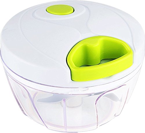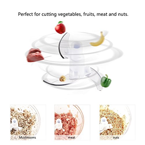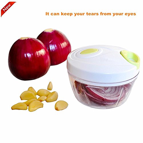 - Powerful & Versatile : Powerful handheld herb / vegetable / food chopper. Perfect for slicing vegetable/fruit salads, cutting various foods for baby, chopping nuts, herbs, veggies, pesto, hummus, salsa, guacamole, meat for meatloaf, ice, and more. It can be used equally well as a vegetable chopper, salad chopper, onion chopper, garlic chopper, herb chopper or as a general-purpose manual food chopper.