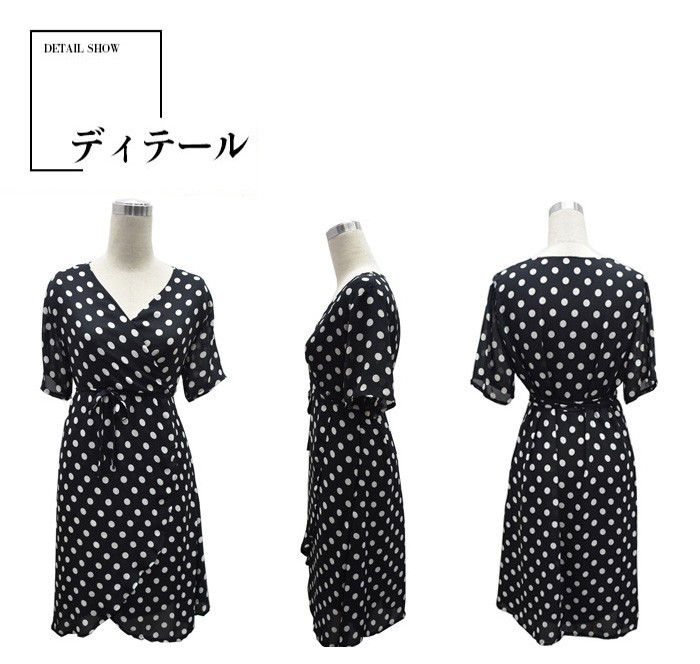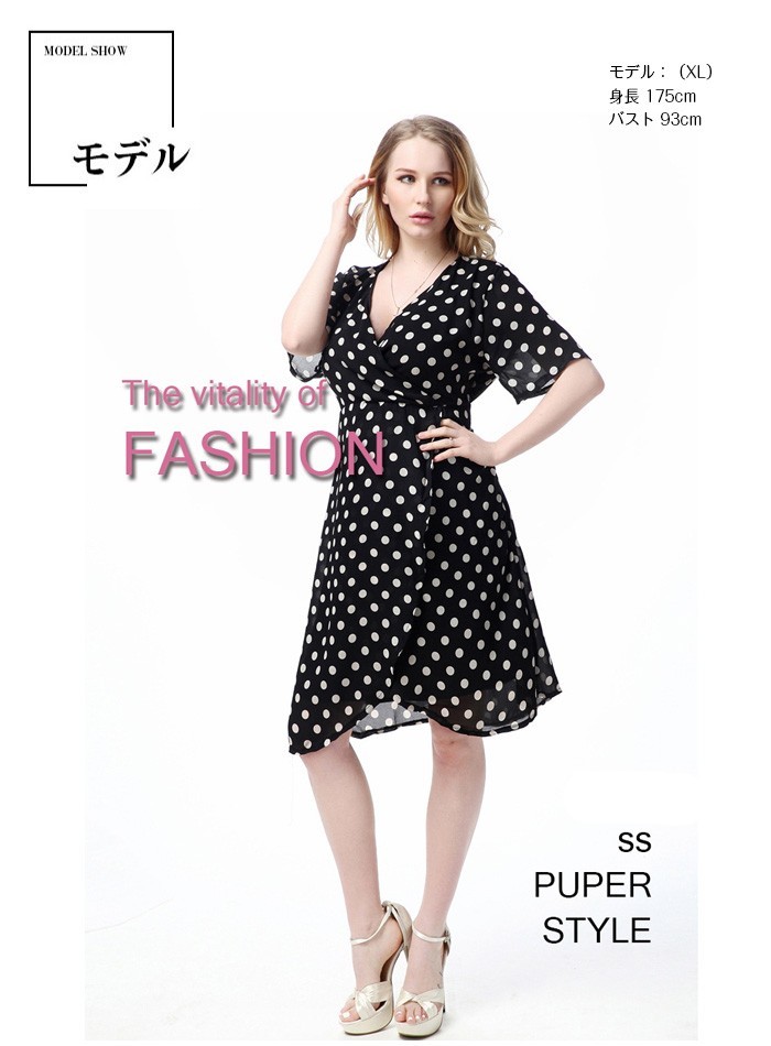 ワンピース シフォン 夏 レディース Aライン 五分丈チュニックワンピース ドット柄 フレアワンピース 春夏新作 ワンピース 夏 レディース Aライン シフォンワンピースリゾート気分満喫のエレガントな小顔効果Vネック水玉柄ワンピースです!着やすいシルエットとハイウエストの切り替えラインがスタイルにメリハリをプラス。普段使いでもこれ1枚でとてもオシャレに演出致しますが、リゾート地やプールサイド?ビーチなどでも活躍出来る、夏のマストアイテムです。商品詳細:五分丈ドット柄シフォンワンピース 夏 ワンピース チュニック素材:ポリエステル99%カラー:ブラック(水玉柄)サイズ:L-7XL袖丈:半袖スタイル:ファッション通勤季節:春夏秋原産地:中国ワンピース シフォン 夏 レディース Aライン 五分丈チュニックワンピース ドット柄 フレアワンピース 春夏新作 ワンピース 夏 レディース Aライン シフォンワンピース