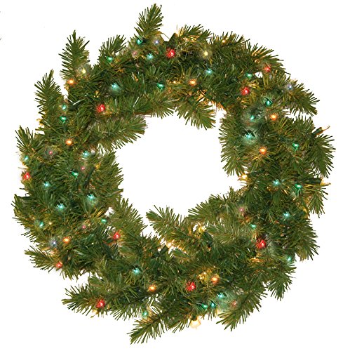 - Prepare your home for the holidays with this classic Portland Fir Christmas Wreath. The Wreath's multi-colored mini-lights glow warmly and brightly to light up your home, putting all friends and family in the jolly Christmas spirit. Each branch has been handled with care to have each light placed for a balanced look all around. This pre-lit 100 incandescent indoor and outdoor light wreath is easily hung; just place on door or wall with hook and plug-in extensions to a standard 120v plug. If a bulb should burn out, this wreath will remain lit and extra 0.4-watt bulbs are included for your convenience. At the close of the holiday season, this wreath is easily packed and stored, durable for many years of holiday decoration. General Foam offers a standard 2-year warranty on all wreaths. The Wreath measures 24 inches in diameter and its boxed dimensions are 24.5" L x 6.5 "W x 24.5" H.