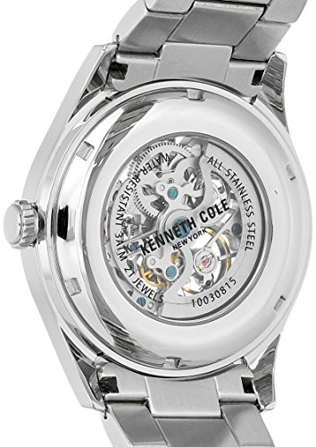 If you are a man with even the slightest fashion sense then you know that typically there is a time and place for every accessory That makes it all the more rewarding when you find one that can be worn across multiple settings and for any occasion This Kenneth Cole is the epitome of a casual watch that works as the perfect wardrobe component for a diverse array of environments Its silver band is made of a strong stainless-steel which makes for a slick but bold appearance This aspect is what makes this timepiece perfectly fitting for a more formal setting or event Its casing is fashioned out of sturdy stainless steel that is 44mmMM wide and 13mmMM thick Not only does this promise superior durability but its dark shade of silver adds a cool yet refined edge as well Its applied indexes contribute to its casual aura in a straightforward kind of way and the black details create a subtle yet noticeable contrast against the silver dial Its dial is guarded by a mineral crystal and has a water resistance of up to 30 meters 100 feet 3 atm so neither water nor wrangling will disable this bad boy In addition it uses a automatic movement promising accuracy and requiring little upkeep The structure of this timepiece is ideal with its tough makeup and its bold style it will do for any activityFeature