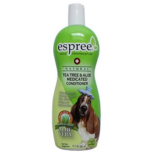 Studio : Espree Publisher : Espree Binding : Misc. Product Description Tea Tree and Aloe Medicated conditioner is formulated with natural and organic properties to promote healing and healthy skin. Tea Tree Oil and Aloe Vera aid in the relief of multiple skin problems including flea bite dermatitis, fungus, bacteria, hot spots, razor burns and dry skin disorders. Veterinarian recommended to soothe seriously irritated skin. For best results use with Espree Tea Tree and Aloe Medicated Shampoo and Tea tree and Aloe Medicated Conditioner. This product contains organically grown Aloe Vera from the inner fillet of the Aloe plant in place of water. Aloe Vera's beneficial nutrients act as a powerful skin hydrator since Aloe is absorbed into the skin 4 times faster than water. Aloe Vera also heals allergic rashes, sunburn, insect bites and minor abrasions while alleviating swelling and boosting immune response. 0