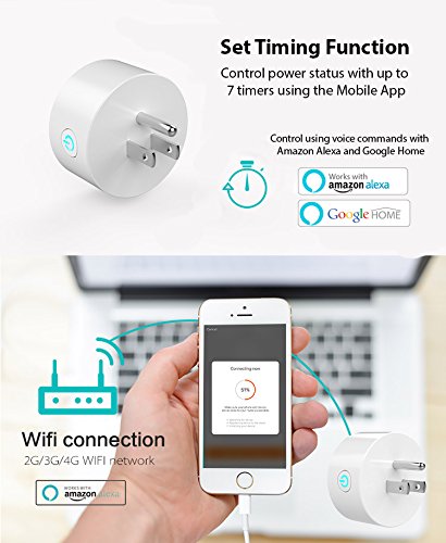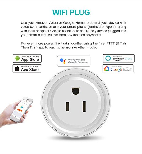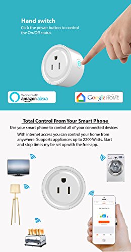 This plug provides added freedom and security at your fingertips. Hate being late because you couldn't remember if the curling iron was turned off? Not anymore. Too tired to get up and turn off that lamp across the room? How about just asking Alexa/Google Home to do it for you. Is coming home to a dark house a little unsettling? Wouldn't you prefer to be able to turn the lights on before you got home. Want to turn on that personal heater at work so your office is warm upon arrival? Solve all these problems and more with this Wifi Smart Plug. Its sleek and modern design will look perfect in any electrical socket. You'll wonder why you waited so long to get one.Feature