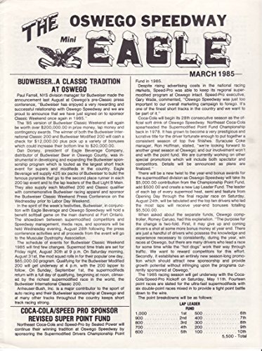 OSWEGO SPEEDWAY NEWSLETTER MARCH 1985 WALTRIP FN