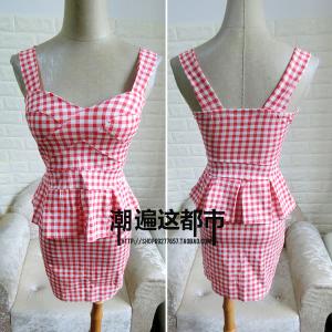 ギンガムチェック 花柄 タイトワンピース ペプラムワンピース 大人ワンピース レトロ プチプラ ミニ丈 セクシー