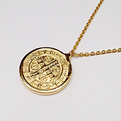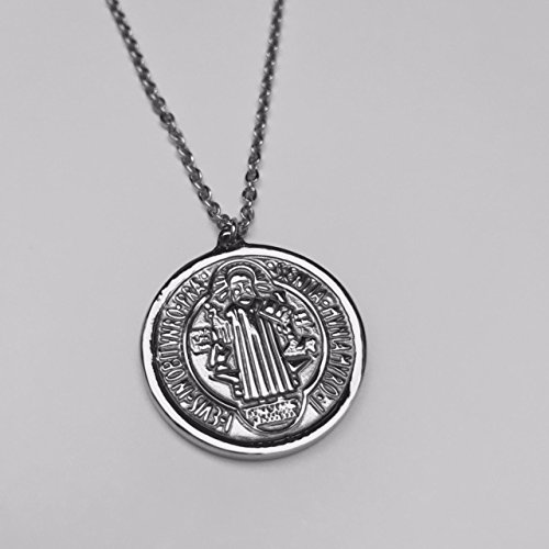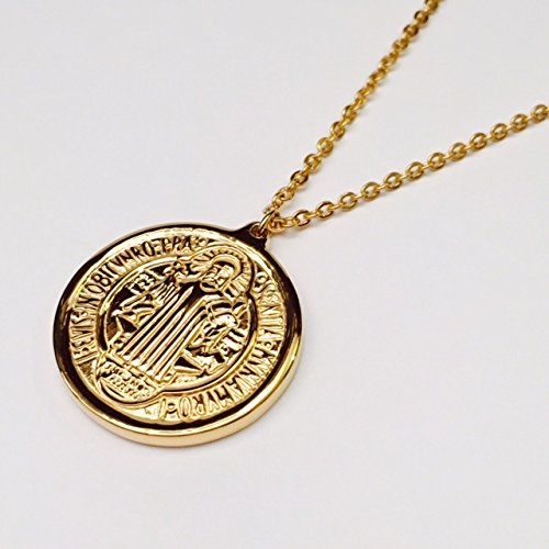 -. Title : Amythyst Silver or Yellow Gold Tone Stainless Steel Round or Oval Shaped St. Benedict's Medal Pendant Necklace