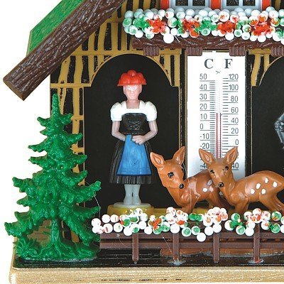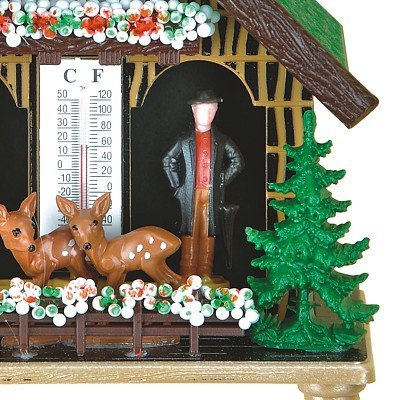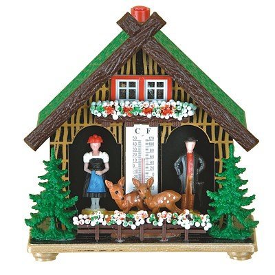 -. Feature : Colour: Coloured Height: 12 cm/4,8 inch The weatherhouse is made of plastic and weatherproof. This is how a weather house works: There is a gut string inside, which reacts to all changes in the air humidity. Depending on whether the air is dry or humid, the gut string changes its position and twists more or less, so that the female turns outside when it is dry and the male, when it is humid.