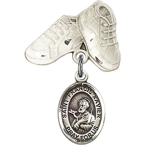 -. Title : Sterling Silver Baby Badge with St. Francis Xavier Charm and Baby Boots Pin 1 X 5/8 inches