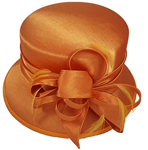 Binding : Apparel Product Description Product description The Ana's Orange hat by Swan Hat is crafted with hard felt and covered with satin fabric is for ladies who like to shine in the crowd with Ana's hat you will be the envied of for friends also a fantastic headpiece to match with for your outfit. Feel like a Queen in an instant with the Ana's Hat. The Ana's Orange hat features a satin headband wrapped around the crown, the feathers and the bow attached on the right eye of the hat makes of this hat a unique piece added a Luxury touch to your outfit Perfect for everyday wear a fancy event, Kentucky Derby, Grand National, Melbourne Cup, weddings, wedding, church or religious gatherings. Great for ladies, and teens and girls. Great for multiple seasons. Will compliment any outfit. 0