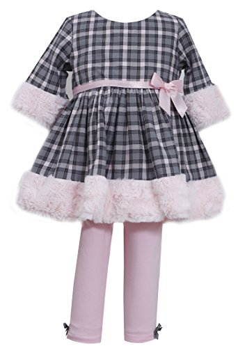-. Title : Bonnie Baby Girls' Cotton Plaid and Fur Legging Set