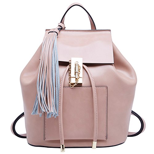 -. Feature : Split cowhide leather backpack purse for women,high quality golden hardware anti oxygenic.Fashion lock can be rotated 360 degree,Polyester lining and Naturally tassel pendant. Same stitching matches the same color of bag.This women's leather knapsack is durable and comfortable,perfect for college school as fashion bag,school bag,travel bag,daypack. / Womens leather backpack with soft back and top handle,Hasp andcover closure with leather drawstring.Large capacity:(L)8.4" * (H) 10.2" * (W) 3.1"inch Light Weight:1.56 pounds,Easily carry your mobile phone(iPhone 6/6s/6plus/7/7plus),wallet,cosmetic,IPAD,umbrella and other daily essential things.Great leather shoulder bag,daypack. / This leather bag contain 1 generous pockets,included 1 wall zippered pocket and 1 cell phone slot,1 front pack. Portable and designed for the safety of your properties.Fat bucket shape,smooth and soft surface. / Cover top closure with long shoulder handle. Shoulder bag with buckle fastening adjustable shoulder strap and can be changed to be used as:Backpack,Messenger bag,Shoulder Bag,Sling Bag or a Hobo.The straps are very comfortable and sturdy,can be last long time. / Famous brand,Designer backpack for women.Handmade by professional artisans.Elegant, Fashion, casual and luxury.Fit for traveling,work place,dating,shopping.Great gift for your female friend, it will be a Surprise
