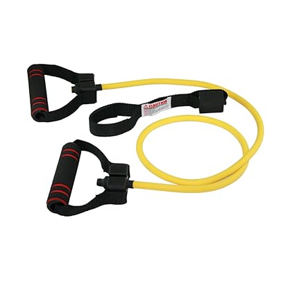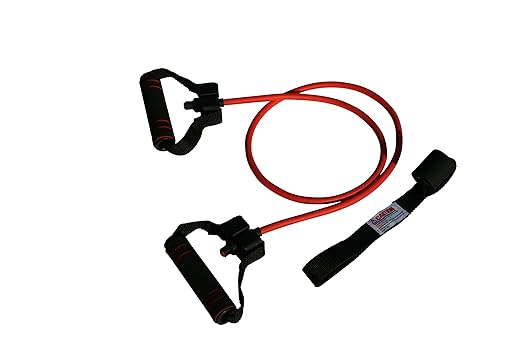 [Product Information]- GYM QUALITY RESISTANCE BANDS TUBE - Exercise resistance bands manufactured to stand up to the most rigorous workout training. Our single resistance tube bands are made out of high quality rubber. Great for workout at home, gym, travel and working out in office for both men and women.Total overall height from top to bottom is 48” don’t be fooled by other shorter fitness bands available on amazon.