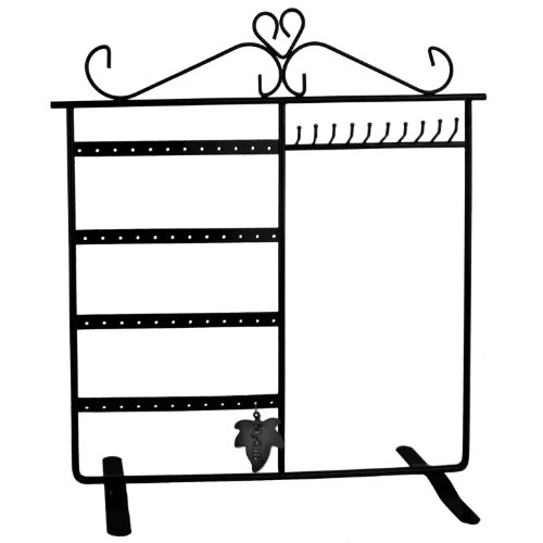 -. Feature : this black metal jewelry rack will hold all of your favorite necklaces and bracelets with a clever harp design that not only uses a minimum of space / 3 removable posts for hanging a variety of jewelry sizes and lengths. / Metal with a black painted finish / Sturdy, durable construction / Measures 13 1/2" H x 10" W x 4 1/2" D