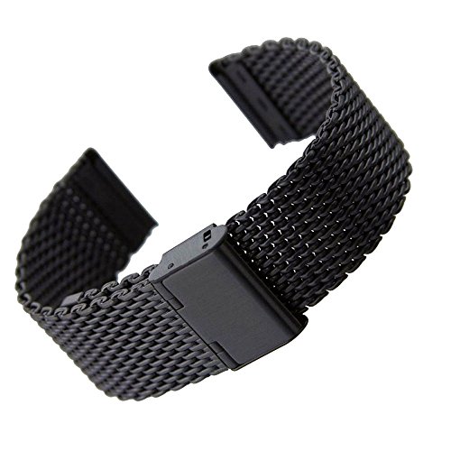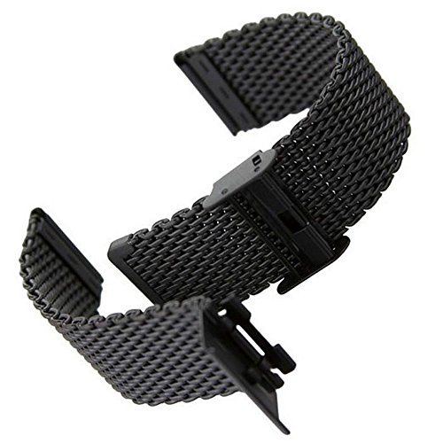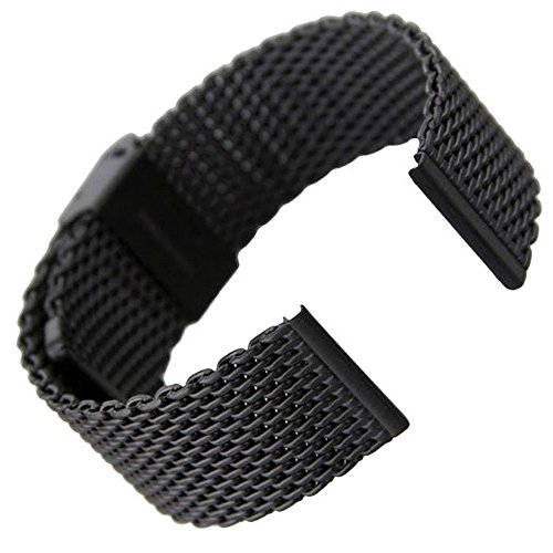 -. Title : YISUYA 22mm Solid Milanese Mesh Stainless Steel Strap with Hook Buckle Classic Black Watch Band Straps 2.2cm