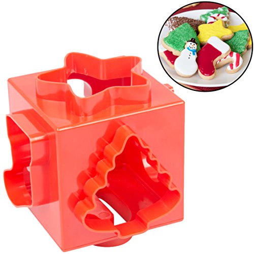 Christmas Cookie Cutter Cube- Holiday Cookie Press Set w 6 Unique Winter Shapes- All in One 6-Sided Design Means No More Clutter
