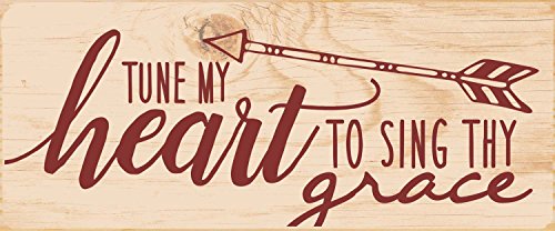 Tune My Heart To Sing Thy Grace Arrow 2.5 x 6 Dried Pine Wood Screen Printed Sign