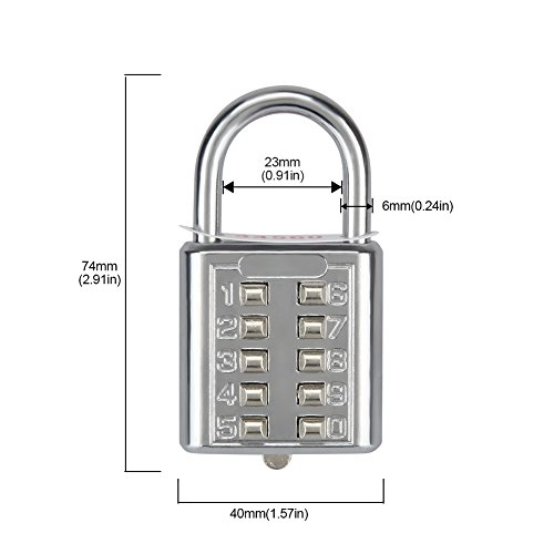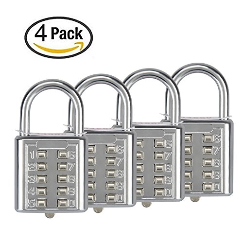 Owfeel 10 Digit Heavy Duty Push Button Combination Padlock Security Lock Pack of 4
