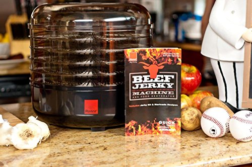-. Feature : Use from 1 to 5 trays quiet convection heat drying trays and lids are dishwasher safe / Includes jerky kit / Comes with marinage receipes on the side of the box