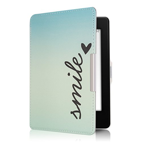 kwmobile Elegant synthetic leather case for the Amazon Kindle Paperwhite Design Smile in blue turquoise