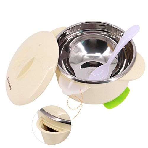 -. Title : La moriposa Baby Stainless Steel Suction Bowl and Spoon Warming Bowl