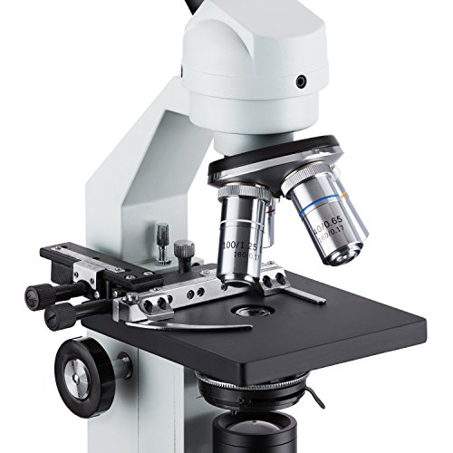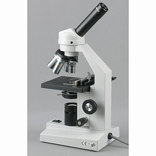 AmScope M500B-MS-LED Cordless Monocular Compound Microscope, WF10x and WF20x Eyepieces, 40x-2000x Magnification, Anti-Mold Optics, LED Illumination, Brightfield, Abbe Condenser, Coarse and Fine Focus, Plain Stage with Mechanical Specimen Holder, 110V or B