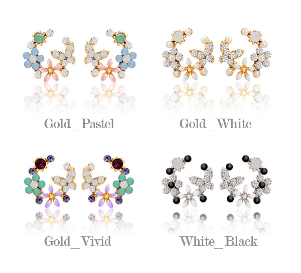 정교한 꽃과 나비 모양의 라운드 플라워 가든 귀걸이 입니다.