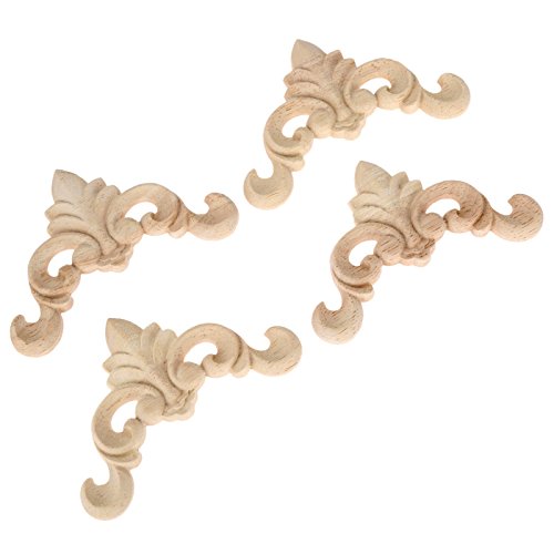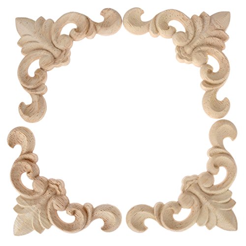 4pcs 8x8x0.8cm Oak Wood Carved Furniture Corner Onlay Applique Unpainted Home Decor
