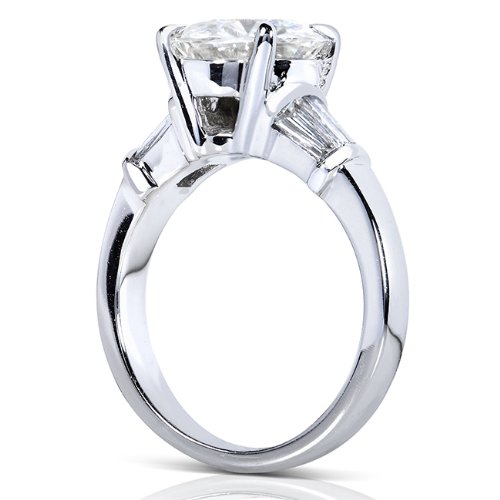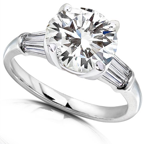 -. Feature : Center stone is a 9.5mm Round Cut Genuine Kobelli Moissanite / Baguette cut stones are 100% Natural, Conflict-free, Diamonds / Satisfaction Guaranteed. Return or Exchange Policy Within 30 Days / Manufactured by Kobelli. Made in USA / Complimentary jewelry gift box included
