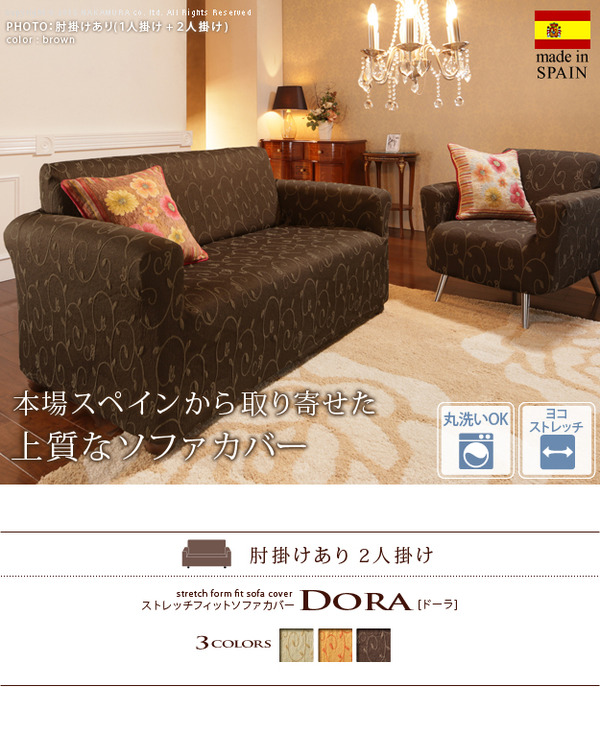 本商品はお取り寄せ商品のため、稀にご注文入れ違い等により欠品・遅延となる場合がございます。誠に恐れ入りますが、何卒ご了承ください。 また、以下の場合には追加送料がかかる場合がございます。  ・大型商品の複数購入時 ・同梱区分が異なる商品の複数購入時  【出荷目安】:3 - 6営業日 ※土日・祝除く 【同梱区分】:TS 1832 【梱包サイズ】:大型商品 【代引き決済】:不可  配送伝票の依頼主は出荷元(メーカーもしくは仕入元)名となる場合がございますので、お受け取りの際はご注意ください。   【型番】61000207  スペイン製ストレッチフィットソファカバー DORA〔ドーラ〕アーム付き 2人掛け用 ソファーカバー ストレッチ 肘付き 2人掛け オレンジ   ≪アーム付き・2人掛け用≫ 商品について:横方向の伸縮ストレッチ素材で簡単キレイにフィット。ジャガード織りの高級感。柄物にもトライしてみたい!という方にもオススメ♪ 適合ソファサイズ:幅140~190cm・高さ90cmまで カラー:オレンジ・ブラウン・ライトベージュ 材質:ポリエステル63%・綿32%・レーヨン3%・ポリウレタン2%(61000207)  【特記事項】 画像のカラー・サイズとは異なる場合がございます。商品名のカラー・サイズをご確認下さい。  【ご注意事項】 本商品は、北海道・沖縄・離島への配送はいたしかねます。あらかじめご了承ください。