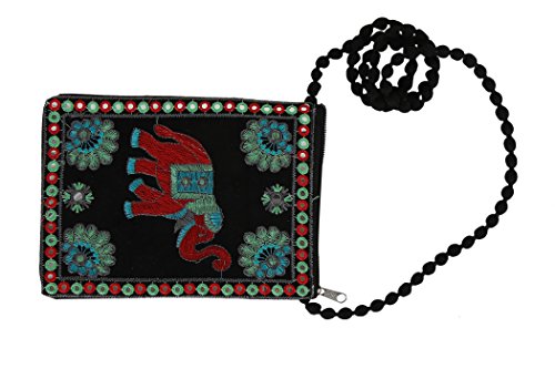 BEAUTIFUL: Pretty Tablet pouch or zipper case design machine embroidery design. Featuring a pretty Elephant applique which sits up from the purse. These embroidered sling bags were hand crafted in Rajasthan. The delightful patterns and colors were adapted from regional embroidery of India.
