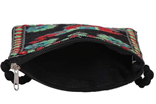 Rajasthani Crossbody Cell Phone Passport Purse Wallet Smartphone Bags For Women (Black)