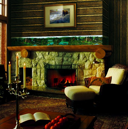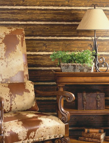 -. Title : Brewster Northwoods Lodge Hewn Log Wallpaper
