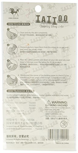 -. Binding : Toy -. Brand : King Horse -. EAN : 0610098994824 -. Feature : Easy to put on and stay for more than one week; / Transfers completely - with no loss of color or cracks, looks as bright on skin as it looked on paper before applying; / Can be remove easily; / High quality fashionable temporary tattoos that look real; -. IsAdultProduct : 0 -. Label : King Horse -. Manufacturer : King Horse -. MPN : HM331 -. NumberOfItems : 1 -. PackageQuantity : 1 -. PartNumber : HM331 -. ProductGroup : Health and Beauty -. ProductTypeName : TOYS_AND_GAMES -. Publisher : King Horse -. Studio : King Horse -. Title : GGSELL King Horse Waterproof tattoo stickers personalized men tattoo stickers eagle wings -. UPC : 691972188218