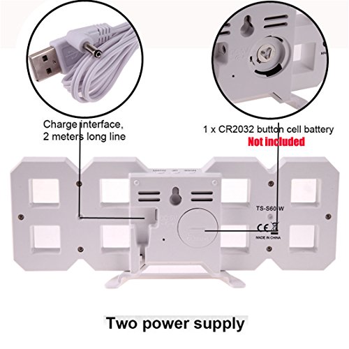 Studio : T21013 Publisher : T21013 Binding : Watch Product Description ?Function: LED time display(the time display 0:00) There are 3 levels of brightness(the default brightness is medium) Night mode with automatic dimming Total 3 functional buttons:MODE,UP,DOWN Total 4 positions time display(12/24 hour modes) The alarm AL display is 6:00 Alarm with snooze function Snooze function,5-60 minutes(The default interval time is 5 minutes) Power:5V(AC adaptor excluded),CR2032 button cell battery(not included) for settings back up,USB Cable(included) Time Setting: Press MODE for 3s to enter time setting, setting order: hour-minute. Alarm Setting: Under alarm mode, press MODE for 3s to enter time setting, setting order: hour-minute-snooze time. 'AL' will light up when setting.When the alarm beeps: Press MODE to active the snooze function.The AL icon will flash.Or press DOWN to turn off the alarm.The AL icon will turn off. Night Mode: The clock will automatically lower LED brightness under night mode, press MODE twice times to enter night mode. Press MODE to turn night mode on/off. When night mode is on, press MODE to ender night mode setting, setting order: start hour-start minute-end hour-end minute. Brightness Level Setting: 3 Brightness levels: Bright, medium, dark Default brightness level is medium. Press UP to switch brightness level. Note: Please allow 1-2cm errors due to manual measurement. Due to the difference between different monitors, the pictures may not reflect the actual color of the item.?product package 1 x LED clock, 1 x USB cable, 1 x User manual 0