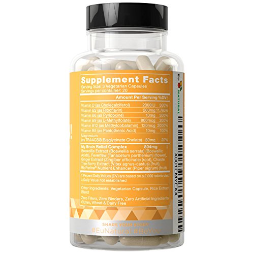 Clinically-researched ingredients like Feverfew and Butterbur Extract provide long-term support by focusing on the root cause of head pain instead of masking symptoms. The powerful blend of all-natural vitamins, minerals and herbal extracts can help manage your symptoms of pain, nausea, dizziness, and auras. Eu Natural - Empowering Your Health #BeYou