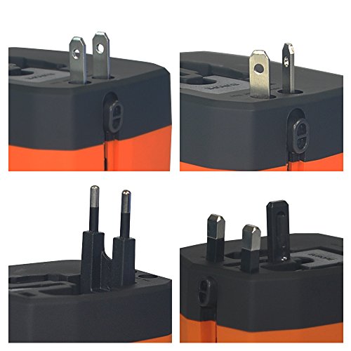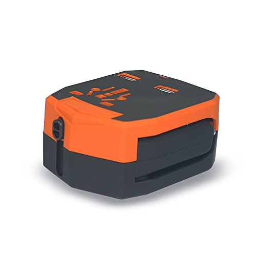 Lauco All-In-One Worldwide Travel Charger Universal Wall Charger Adapter Plug [US UK EU AU] with Dual USB Ports, Fuse Protection Power Converters Suitable for 150+ Countries, Orange