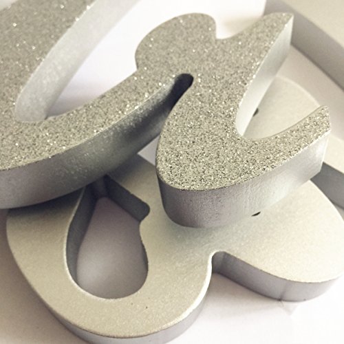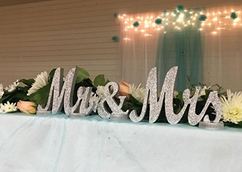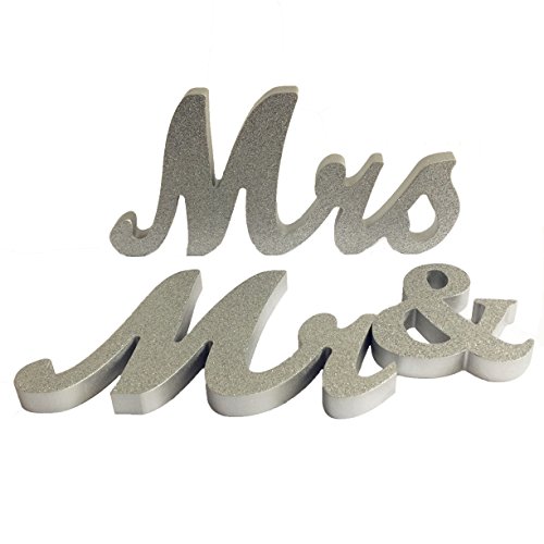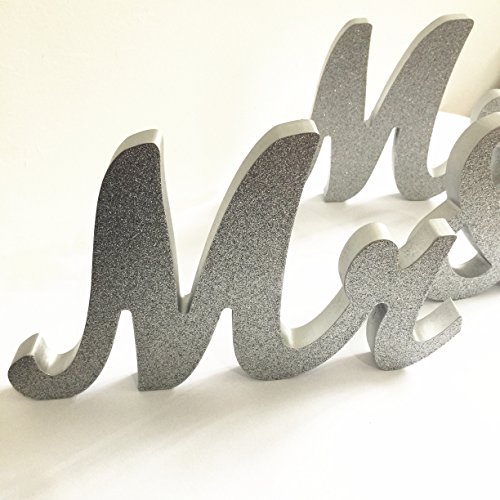 iEventStar Mr & Mrs Signs Wooden Freestanding Letters For Wedding Sweetheart Table Receptions Table Decorations (Glitter Silver)
