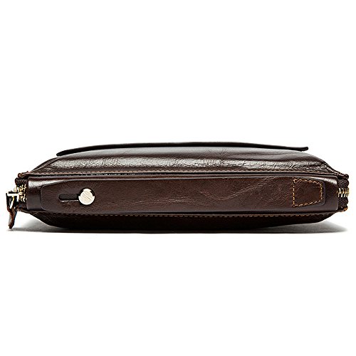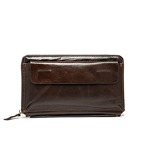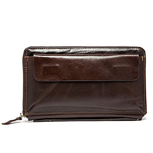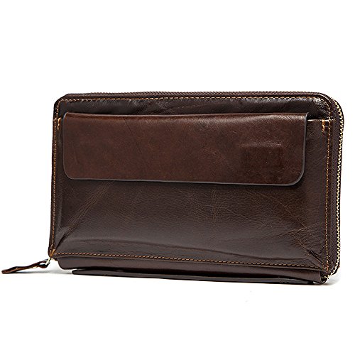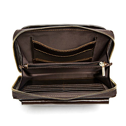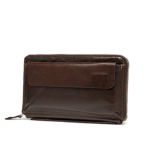 NBSAMENG Genuine Cowhide Leather Long Wallet Zipper Wallets