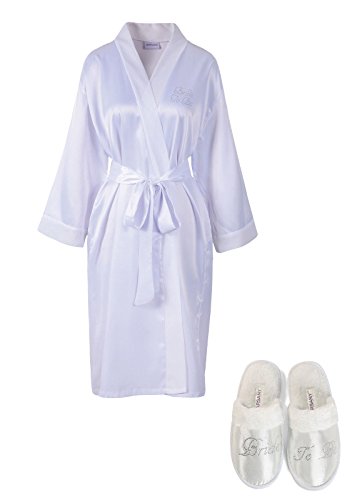 Binding : Kitchen Product Description Is the big day coming up? Or your friends? Do you need something to wear while preparing for the special day? Or are you having a spa day hen party? If so, then you cant go without our customized bridal satin bathrobes spa slippers. The bridal name is designed and manufactured here in the UK using high quality machine cut glass crystals. Small crystal The bride on the front and a larger version on the back. 0