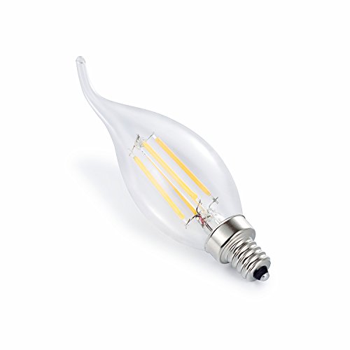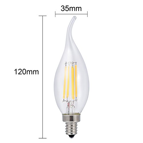 - Classic Edison style C35T flame tip shape, E12 candelabra base (NOT suitable for E26 medium lamp holder), clear glass 360 degree light emitting, perfect choice for chandeliers and ceiling fans