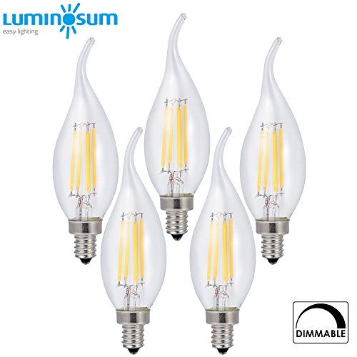 LUMINOSUM LED Candelabra Bulb 4W Dimmable, 40W Equivalent, Classic Edison style C35T Flame Tip, E12 Base, Soft White 2700K, 5-Pack