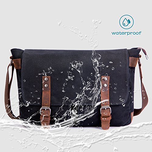 -. Title : SUVOM Mens Messenger Bag,Genuine Leather Canvas Messenger Bag,Waterproof Laptop Messenger Bag For 15 inch Laptop,Vintage Satchel Briefcase Cross Body Shoulder Bag For Everyday Use,Travel,Camping