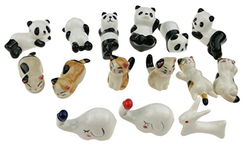Set of 15 Handmade Ceramic Animal Pattern Chopstick Rest Stand Panda Cat Elephant Rabbit For Knife Fork Spoon Chopstick Tableware Kids Toy Ornament Decoration